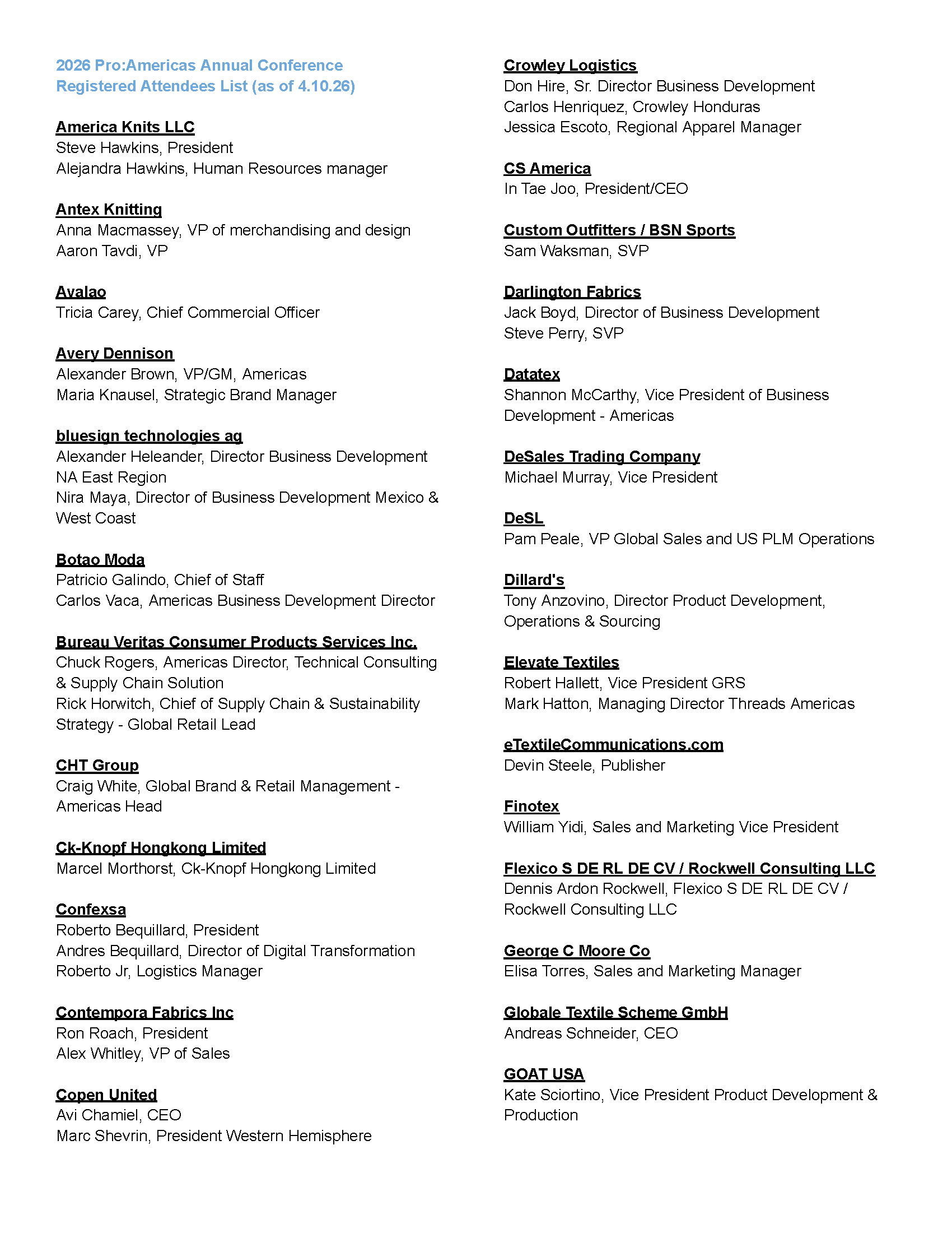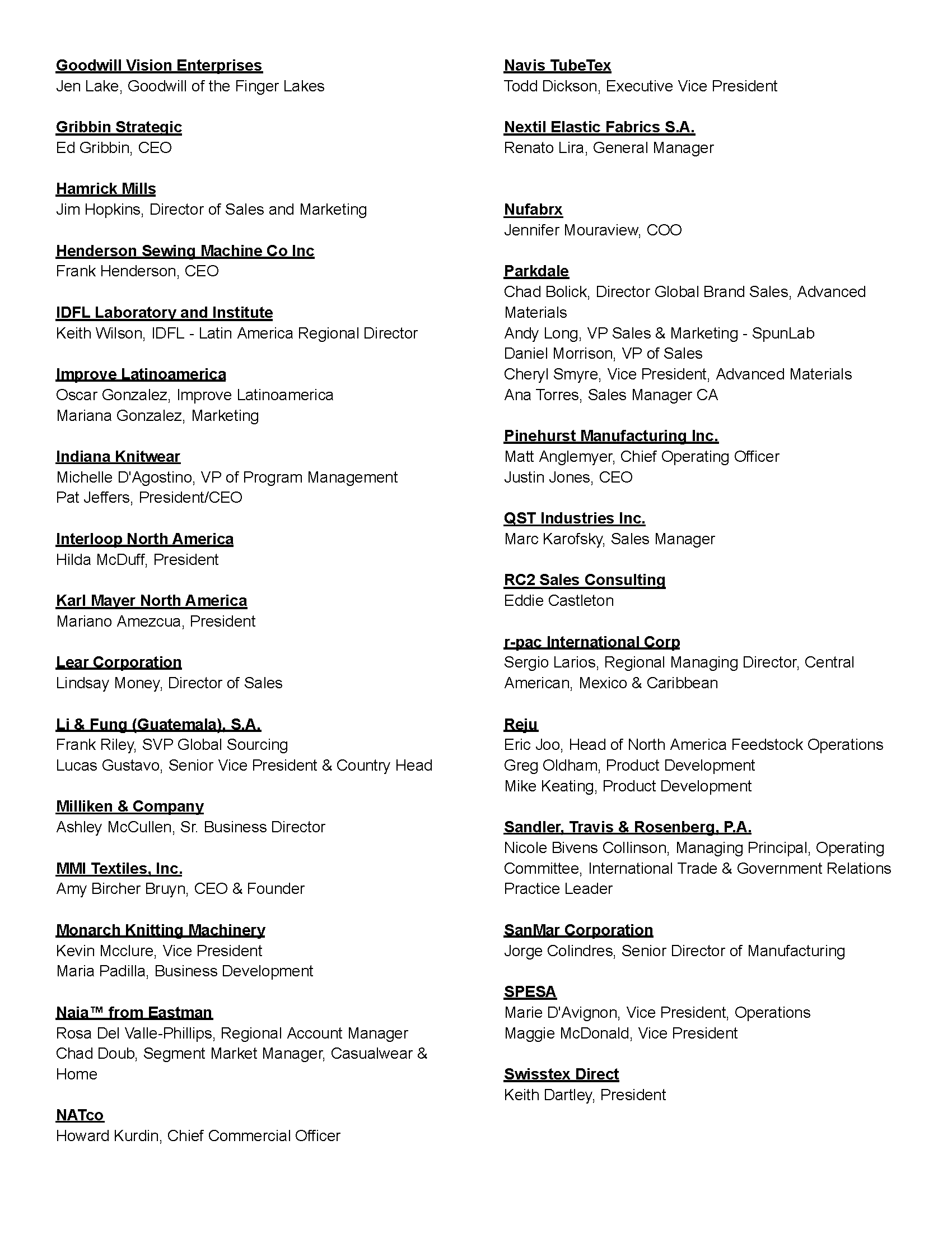 March 23-26, 2026 Carolina Mill Tour